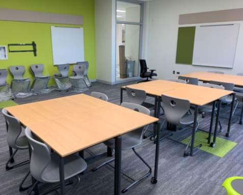 Our classrooms were created with flexibility and adaptability at the heart of the design. Teachers and students will have access to tables, desks, seating, and storage units that are mobile and versatile to create an unlimited number of classroom configurations. There is no traditional “front of the room.” There will be the flexibility to teach, coach, and facilitate learning from anywhere in the room. This set-up aligns with the professional learning our staff who has been trained in utilizing Kagan structures (cooperative learning structures) and 5Cs framework - critical thinking, communication, collaboration, creativity, and culture - which will help support the alignment of instructional practices to the new physical environment. The social-emotional growth of students will only further be enhanced by a learning environment that provides every opportunity imaginable.